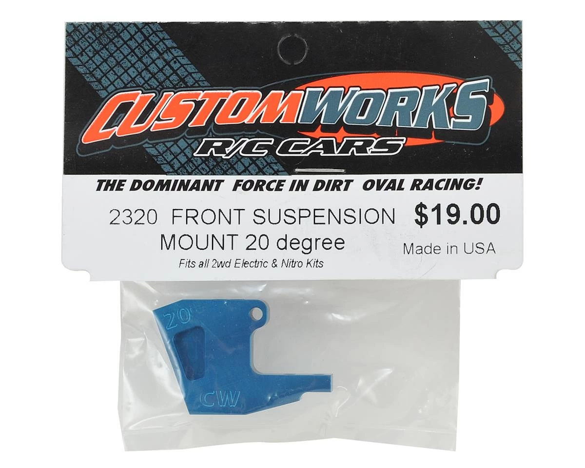 Custom Works 20 Degree Aluminum Front Suspension Mount. This is a replacement for the Intimidator 7 kits, but can also be used with the Enforcer 7, Outlaw 3 and Rocket Stage 3 kits as a tuning option. Package includes one 20 degree front suspension mount.