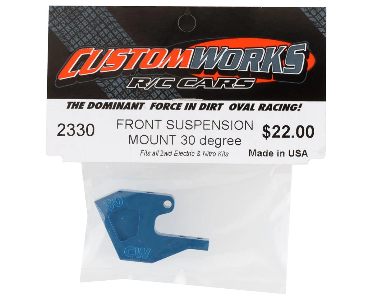 Custom Works 30 Degree Aluminum Front Suspension Mount is an aluminum option part compatible with the Outlaw 4, Rocket 4, Intimidator 7 and Enforcer 7 platforms. Package includes one 30 degree front suspension mount.