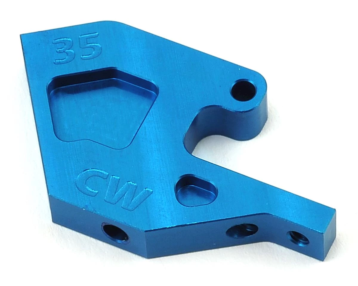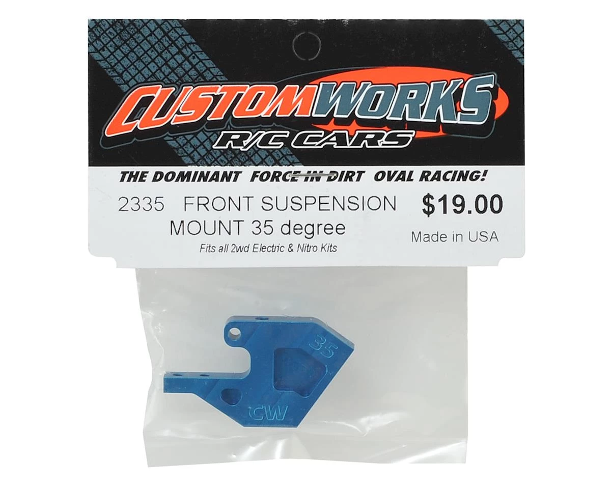 Custom Works 35 Degree Aluminum Front Suspension Mount. This is a replacement for the Rocket Stage 3 and Outlaw 3 kits, but can also be used with the Enforcer 7 and Intimidator 7 kits as a tuning option. Package includes one 35 degree front suspension mount.