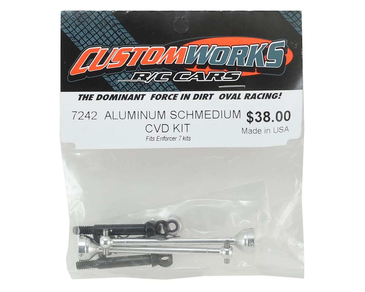 Custom Works Aluminum Schmedium CVD Kit. This is an optional upgrade for the Intimidator 7 and Enforcer 7 kits. Package includes the parts needed to build two schmedium CVDs with aluminum bones.Â