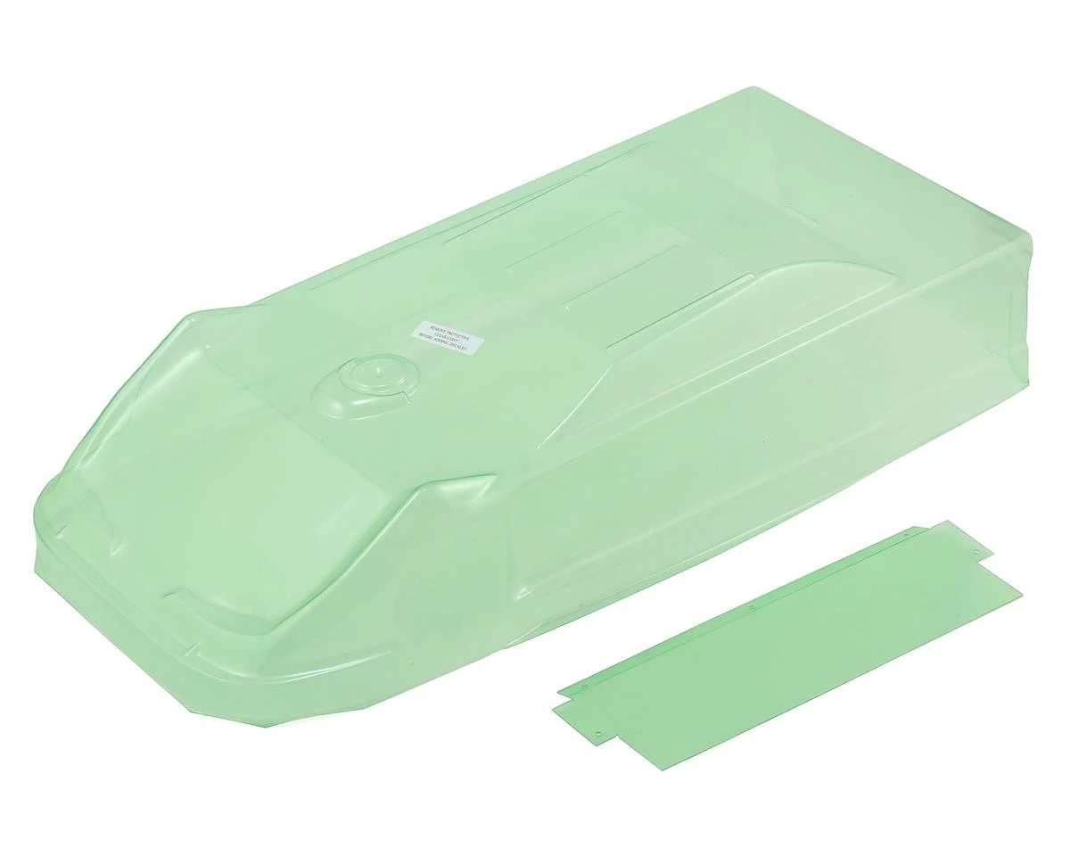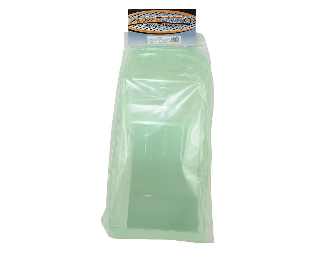 Custom Works Buckeye 9.5″ Latemodel Body. This is a replacement for the Intimidator 7 kits. Package includes one clear Buckeye 9.5″ body with factory applied overspray film, and one rear wing assembly.Â