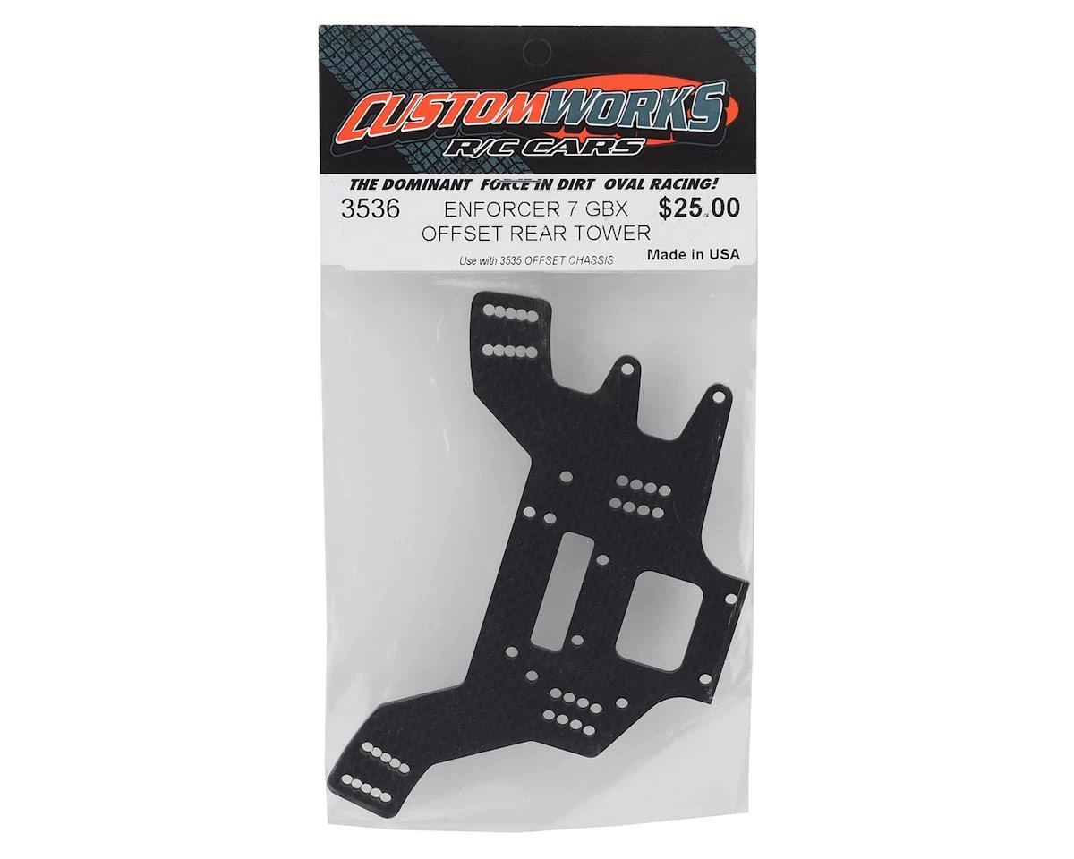 Custom Works Enforcer 7 GBX Offset Rear Tower. This shock tower is required when using the Custom Works Extreme Offset Chassis (CSW3535) Package includes one shock tower.