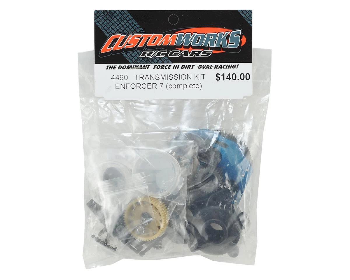 Custom Works Enforcer 7 Transmission. This is a replacement for the Intimidator 7 and Enforcer 7 kits. Package includes all the parts needed to build one complete transmission assembly.Â