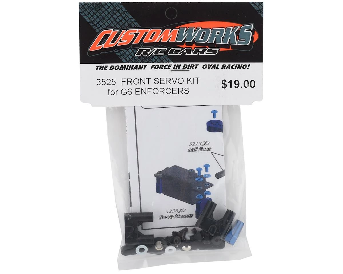 This optional Custom Works Front Servo Mount Kit For G6 Enforcers. Package includes servo mounts, and hardware.