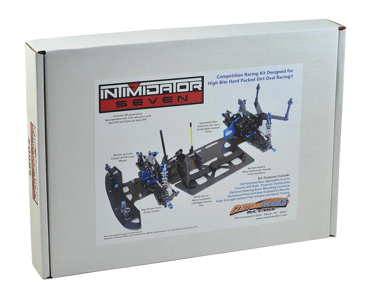 The Custom Works Intimdator 7 Gearbox 1/10th Electric Latemodel Dirt Oval Kit was developed using the DNA of race winning cars, and over 30 years of Custom Works design experience and quality. The Intimidator 7 has been improved in many areas and is highly adaptable to tracks with a variety of different grip levels.