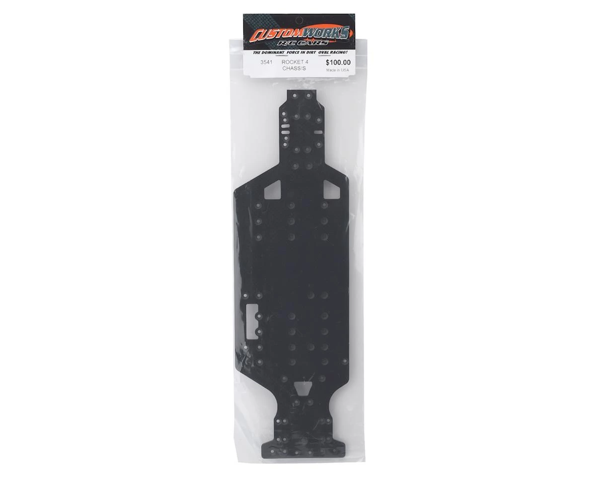 This is a replacement Custom Works RC Rocket 4 Chassis, intended for use with the Custom Works Rocket Stage 4 1/10 Electric Latemodel Dirt Oval Kit. This chassis has been cut from quality carbon plate and is a lightweight replacement for the kit supplied chassis.