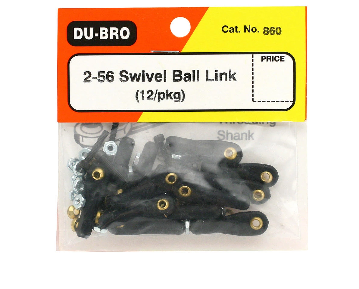 This is a pack of twelve Du-Bro RC 2-56 Swivel Ball Links. These high quality ball links feature burnished brass swivel balls for smooth operation. Complete with socket head cap screw, brass shim and hex nut.