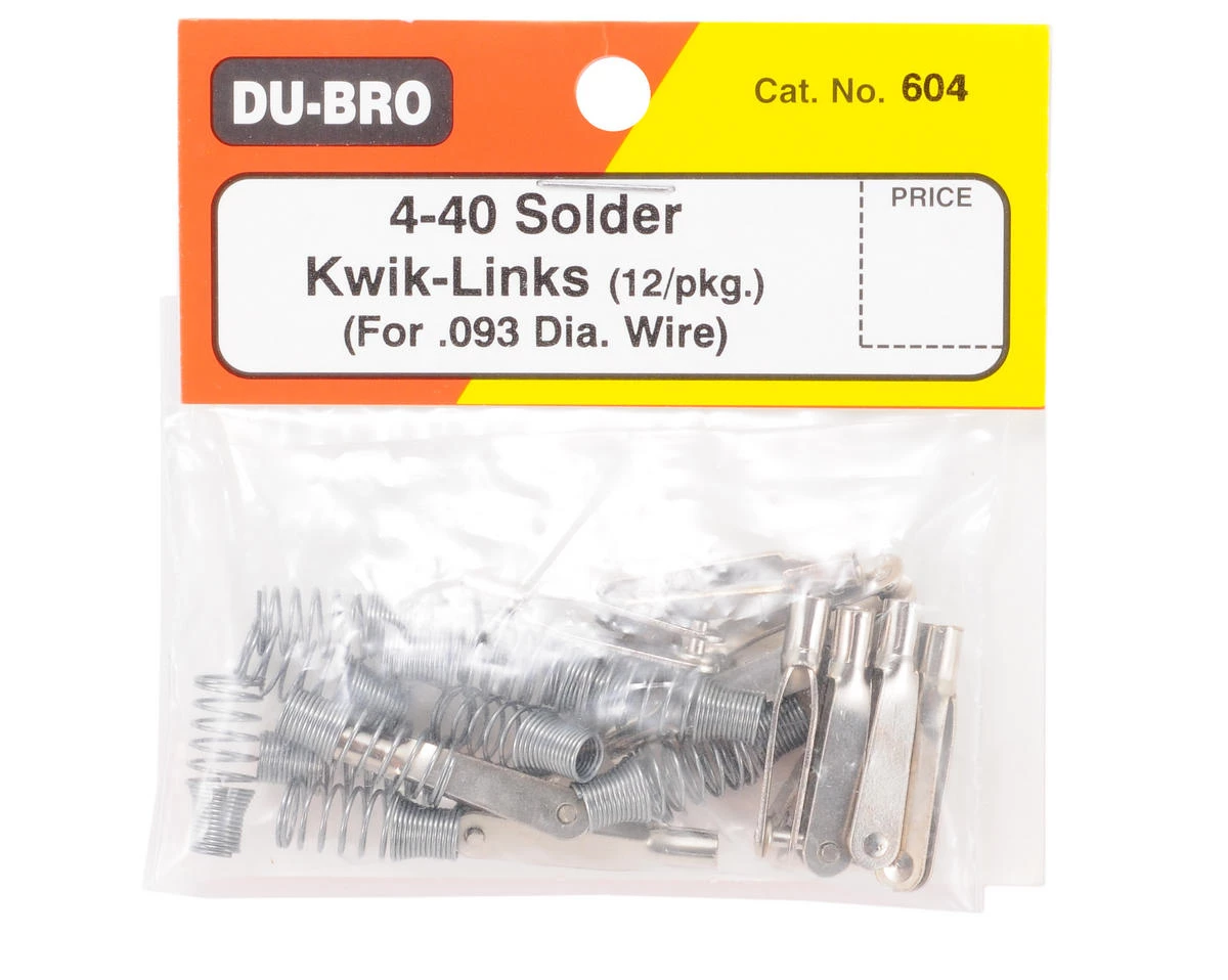 Solder Kwik-Links are nickel plated making a strong, attractive and easy to solder connector for servo or horn. 4-40 Solder Kwik-Link designed for use with .093 diameter wire, spring keepers included.