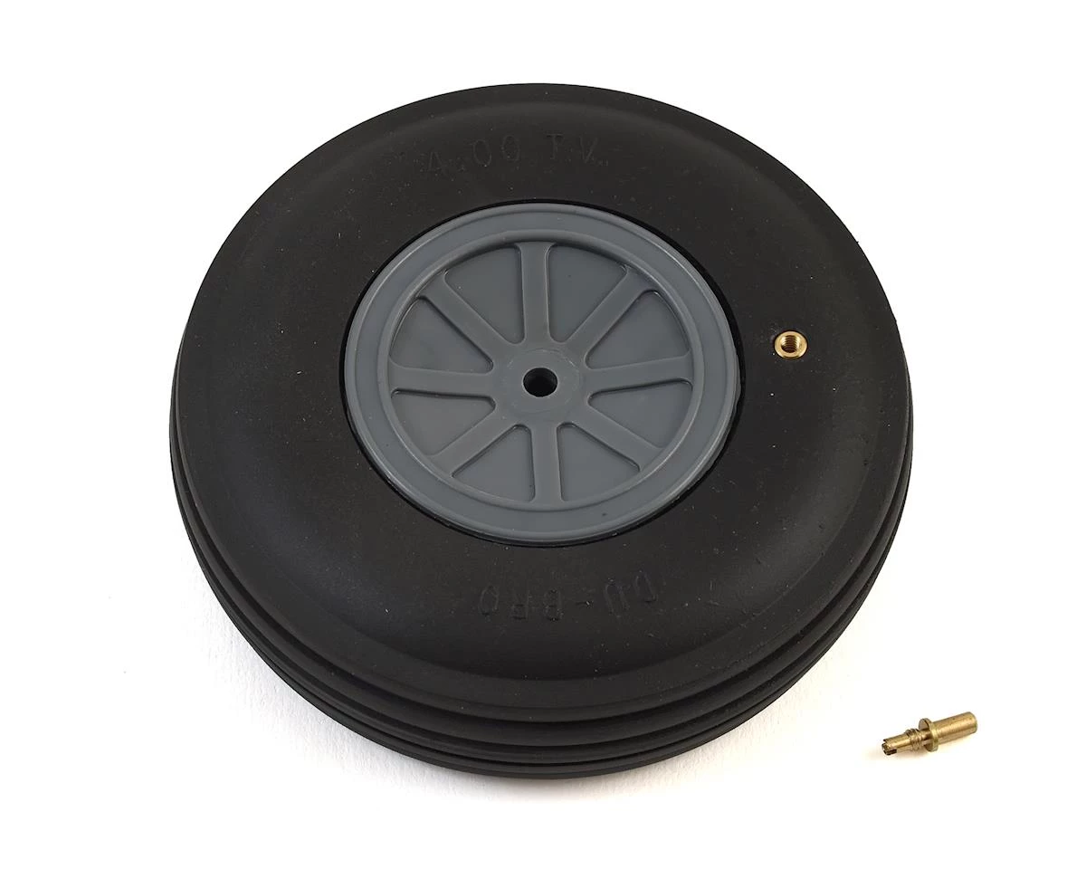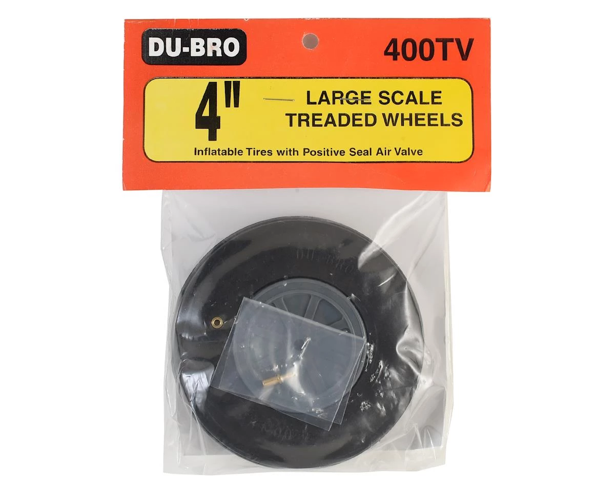 Dubro treaded wheels are narrower in width to fit inside wheel pants and retracts easier. Comes with 3/16 (5mm) axle diameter and can be drilled out to 1/4 (6mm) if desired. Comes complete with our positive seal air valves and inflator adapter.
