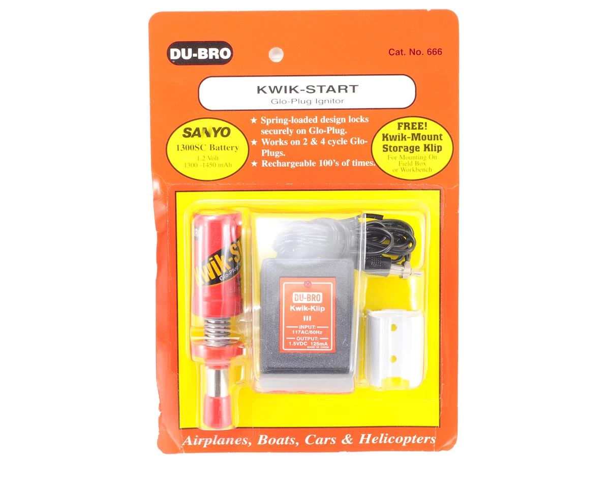 Kwik-Start securely mounts on glow plug for starting engines. Comes complete with Kwik-Mount Storage Klip and charger. Works with NORVEL Freedom XL and 7L glow plugs and all standard glow plugs.