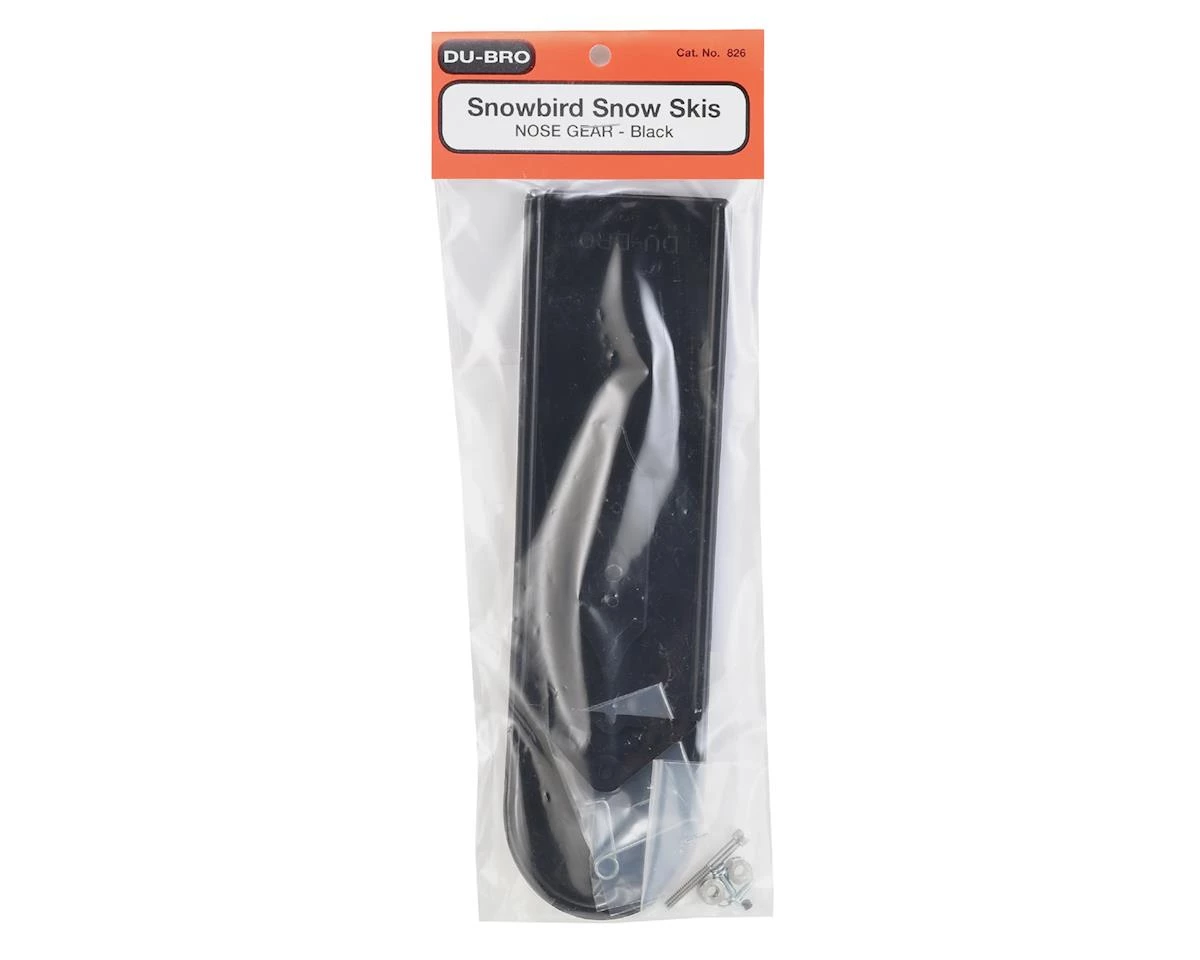 Dubro nose ski has torsion bar design. Easily mounts on airplanes with Dural or wire landing gear in about an hour. High density black polyethelene. Pre-Molded runners ideal for .60 size airplanes.