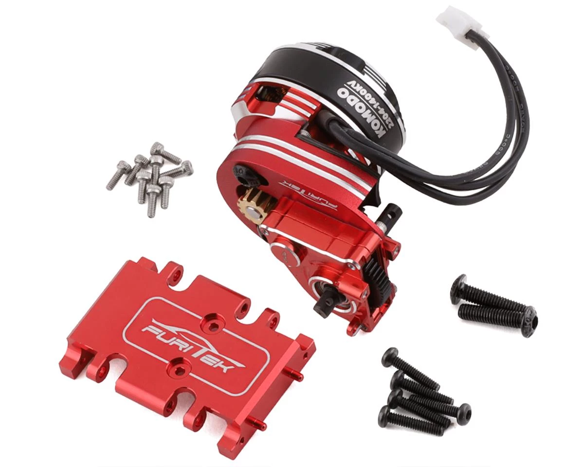 The ALCAZAR Transmission & Motor System from Furitek delivers incredible brushless power to your micro RC rock crawlers, such as the Enduro24 from Element RC, CR24 from HobbyPlus, and Atlas 6×6. The Komodo 2204-1400kV Brushless Motor is paired with a CNC aluminum motor mount, CNC aluminum gear box, and CNC aluminum skid plate.