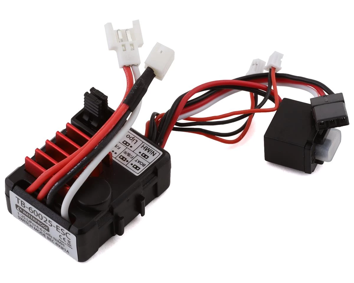 This HobbyPlus 25A Brushed 2S LiPo ESC is an optional upgrade for the Hobbyplus CR-18 and CR-24 Scale Mini Crawlers. This waterproof brushed ESC is a great micro size upgrade if you choose to add a standard radio system to your HobbyPlus mini crawler. With multiple running modes, light ports, and a 6.0V/1A BEC, this ESC is a great upgrade for drivers that want a standard radio system.