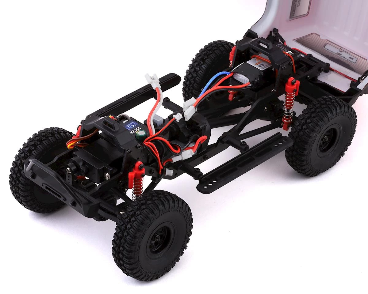 The proven CR-18 chassis offers incredible axle articulation with minimal bump steer thanks to superior linkage geometry and panhard system. A super low 104:1 ratio transmission combined with a ring and pinion drive system provides the low end torque necessary for performance, without sacrificing top speed like a worm drive system. Finally, true beadlock wheels secure super grippy, scale size tires allowing the CR-18 to claw its way through technical terrain.