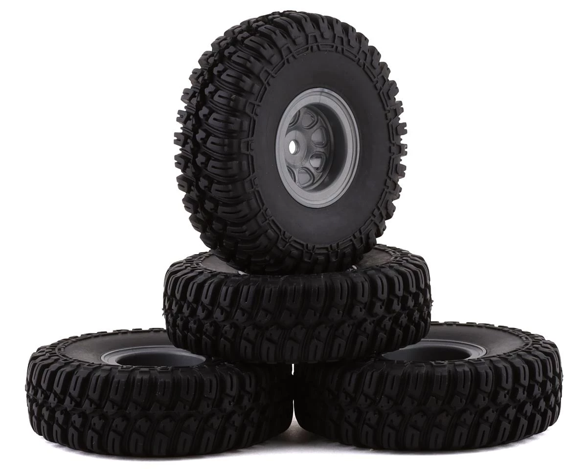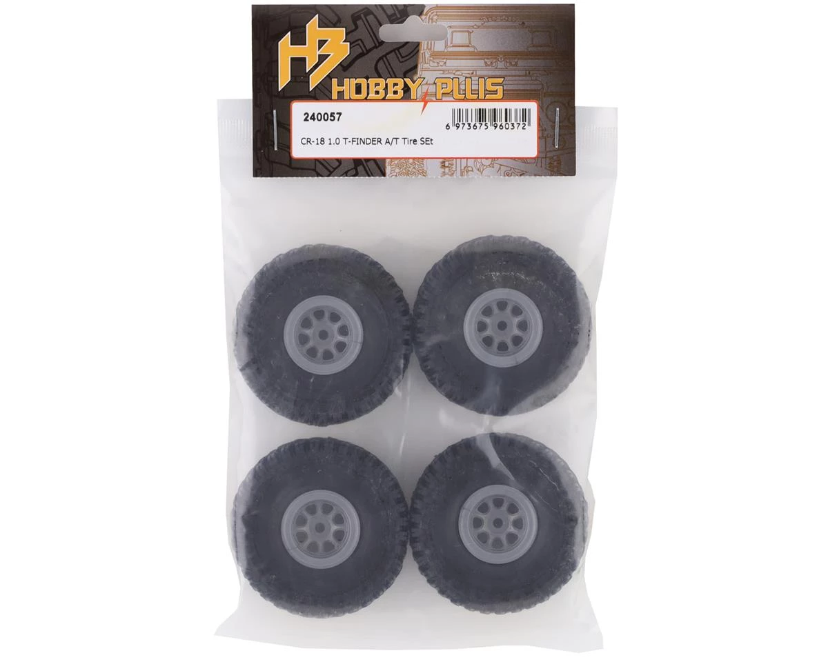 This HobbyPlus CR-18 Grey Beadlock T-Finder A/T 1.0″ Pre-Mounted Tire Set is a tire set intended for use with the CR-18 Scale Mini Crawlers. These pre-mounted tires feature an approximate 2.2x.75″ profile, with an aggressive and incredibly realistic tread pattern and sidewall details. The 1.0″ beadlock wheels feature a 3-piece design with an 8 spoke D-hole pattern to complete the package. Package includes four pre-mounted tires.   Â