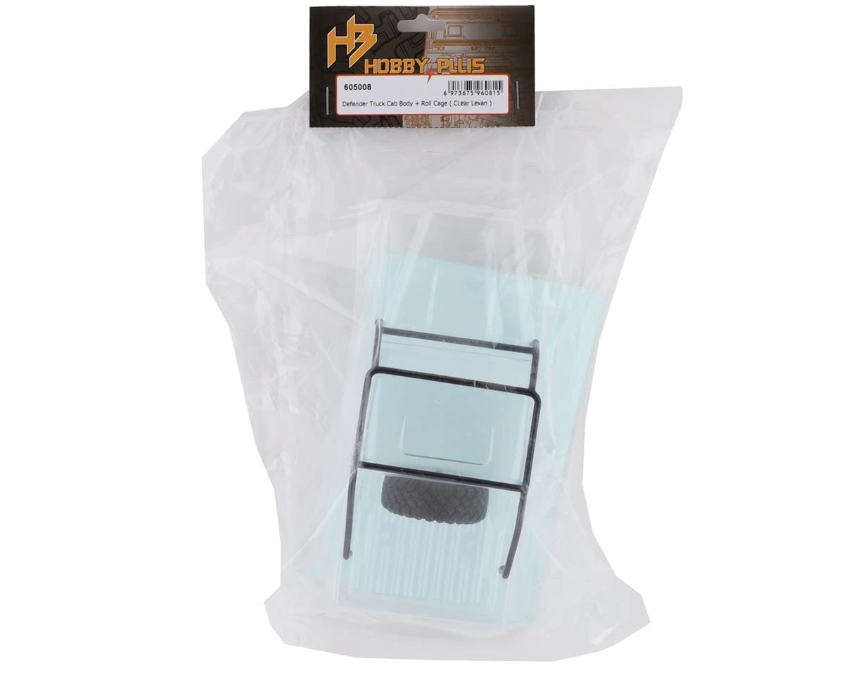 This HobbyPlus CR-24 Defender Truck Cab Lexan Body with Roll Cage is an optional clear body set intended for use with the CR-24 Defender Scale Mini Crawlers.